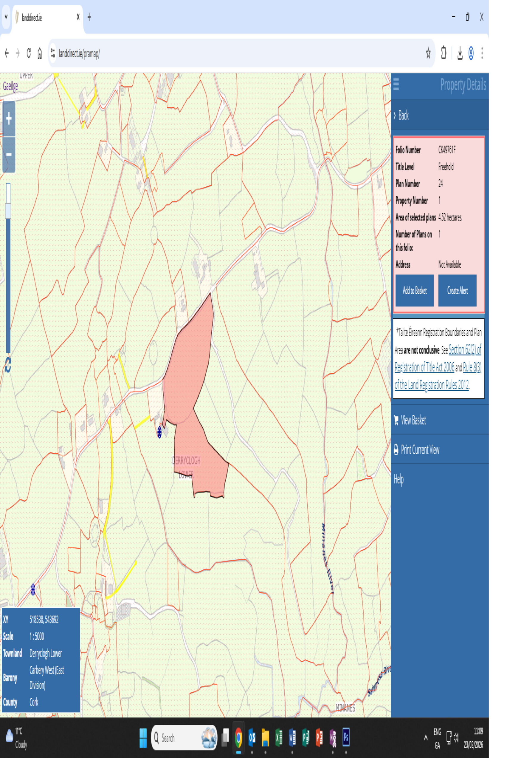 This is a superb opportunity to acquire a lovely block of south facing land just one mile west of Drinagh village. The farm is well presented and maintained and comes complete with a modern slatted shed and general farm outbuildings. This farm is laid out in 30 acres of permanent pasture with the balance being low lying bog and rough grazing. There is water and electricity connected to the farm. This is an impressive holding and well worth a look.