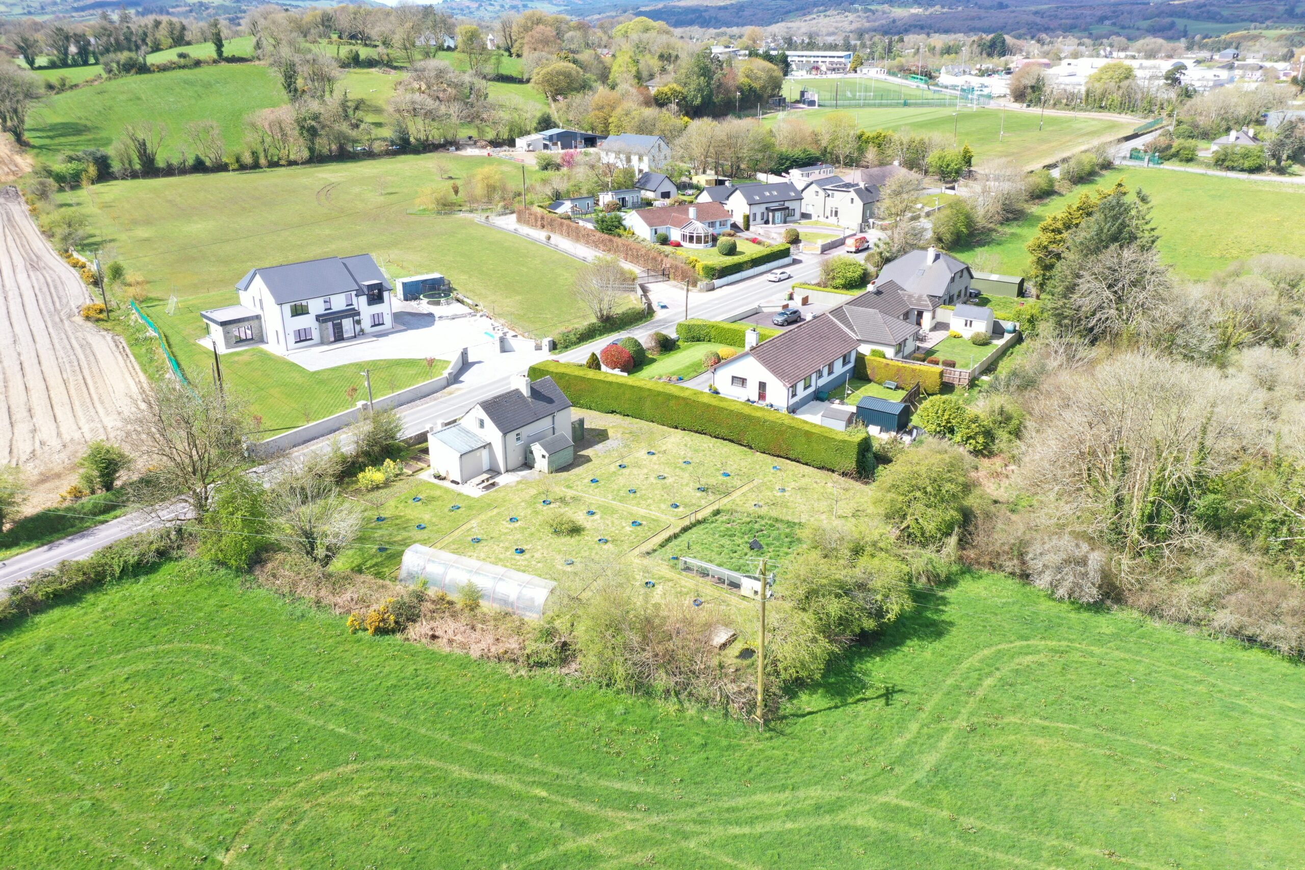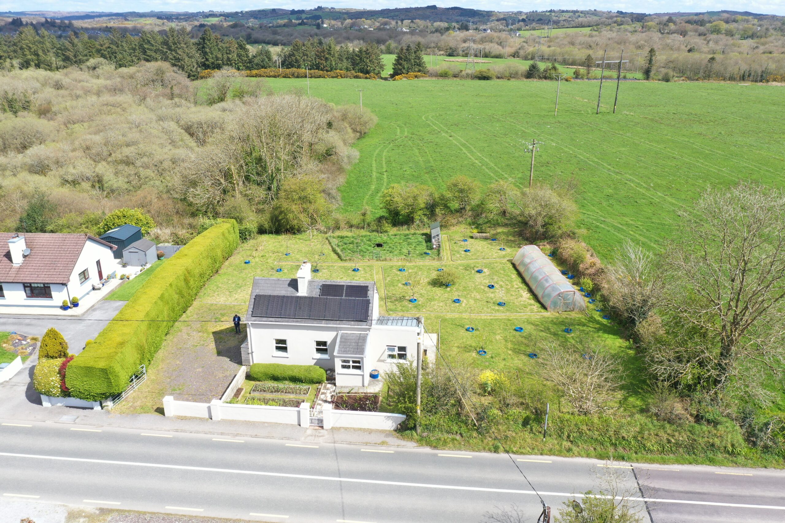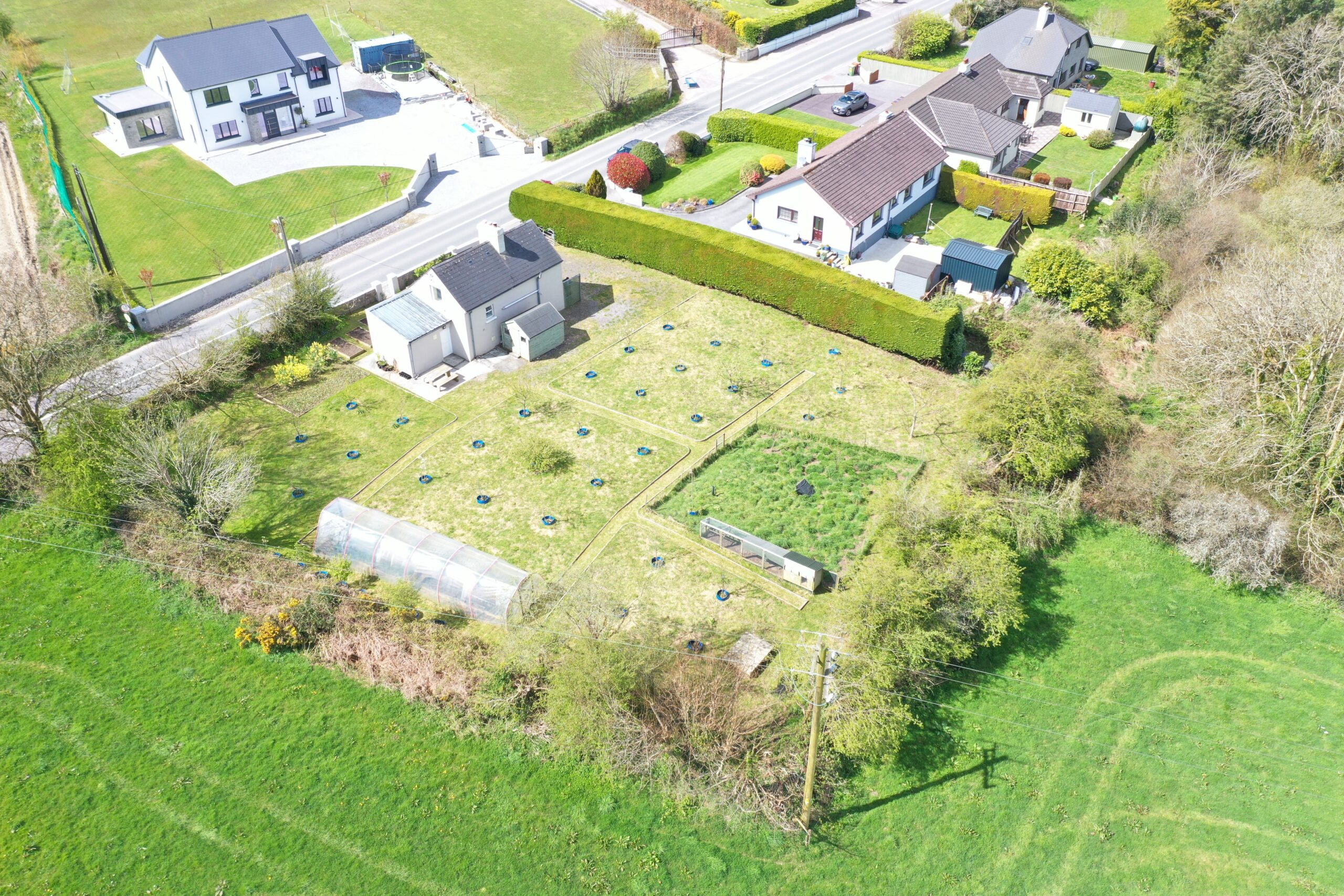 The outdoor space is a true highlight. To the front, a beautifully maintained garden features a series of raised vegetable beds while at the rear there is a permaculture orchard and a polytunnel perfect for those with a great passion for gardening or sustainable living. The garden is thoughtfully arranged, with established planting areas, a neatly kept lawn, and mature greenery providing privacy and tranquillity. The property is located at the edge of Dunmanway town within walking distance of the town centre, 25 minute drive to Clonakilty, Bantry and Skibbereen and about 45 minute commute to Cork City.